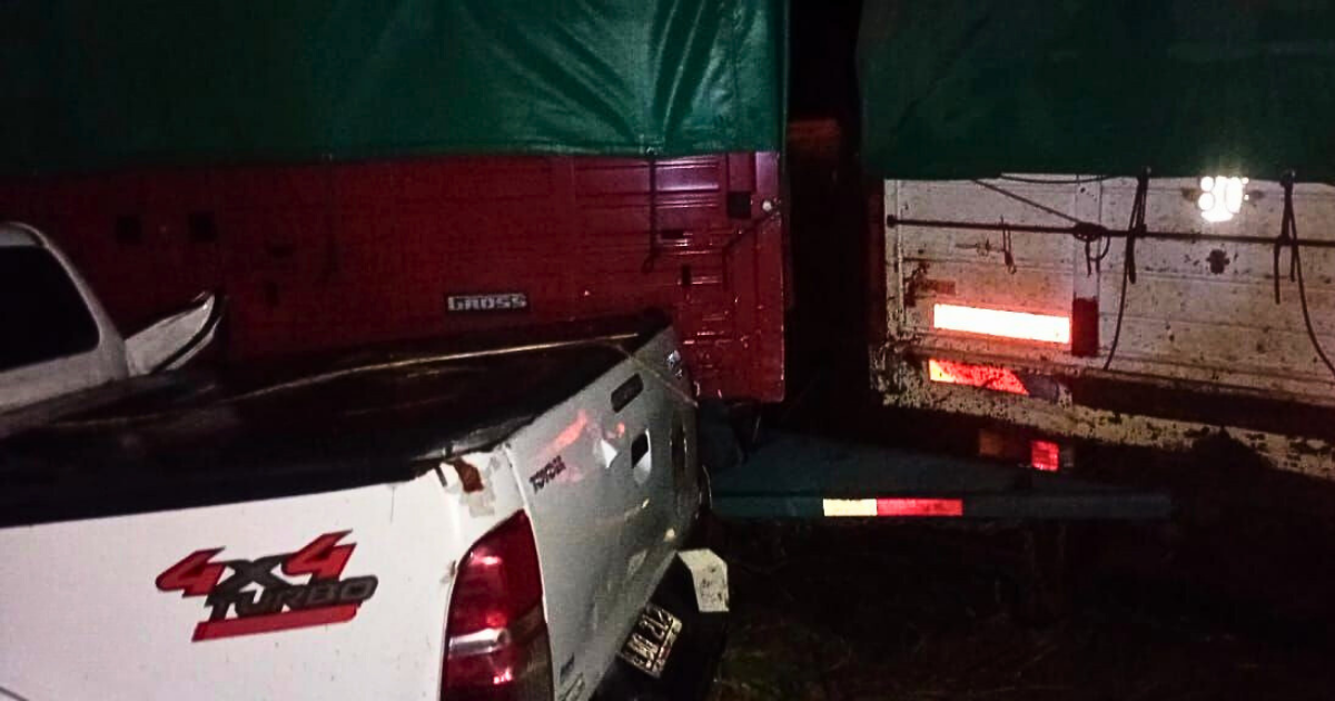 Por ANDRES GIMENEZ – Un siniestro vial se registró en la Ruta 39, a la altura de Portugalete, e involucró a un camión Ford Cargo con acoplado y una camioneta Toyota Hilux.