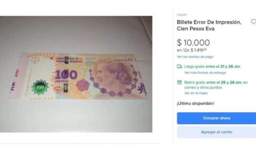 Billetes de 100 con error, Luego del furor desatado por las monedas de un peso con un error ortográfico, ahora los coleccionistas están comprando billetes de 100 pesos por hasta 10 mil.