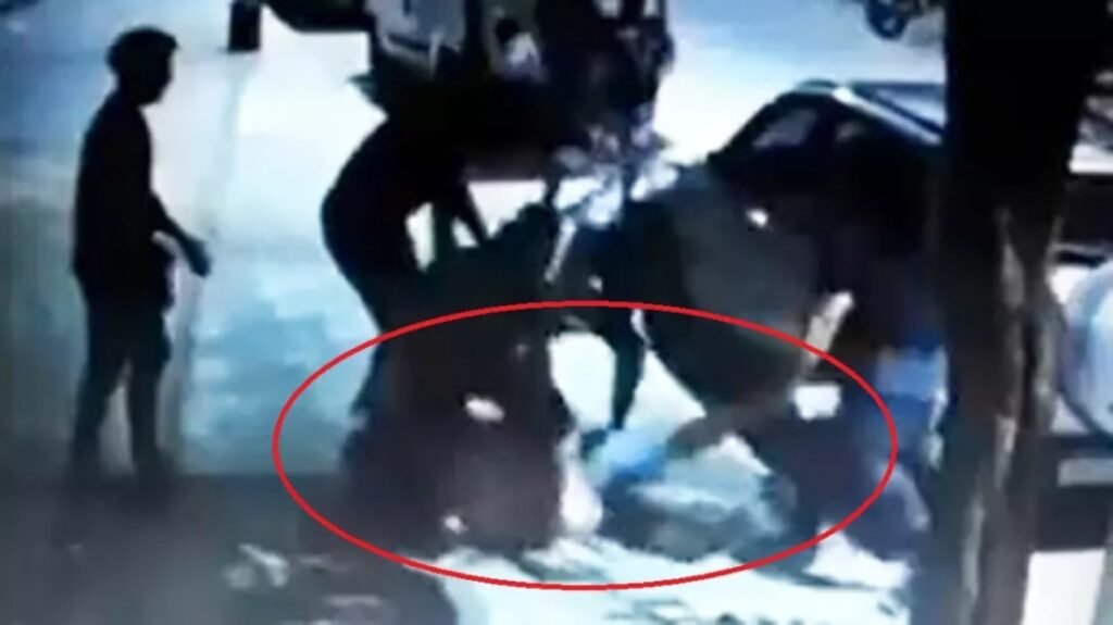 Allí se observa que al menos cuatro personas golpean ferozmente a un joven que está tirado en el piso y que solo atina cubrirse de las patadas y golpes de puños que le propinan. La secuencia dura aproximadamente un minuto.