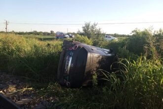 Incidente Vial en la RN34: Automóvil Tumba Cerca del Paso a Nivel entre Hersilia y La Rubia