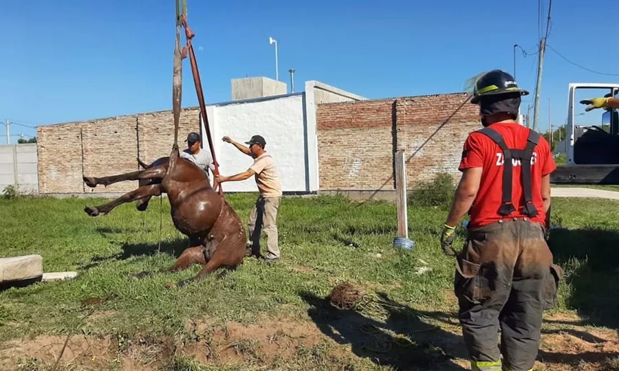 Rafaela: Caballo cayó a un pozo ciego y fue rescatado