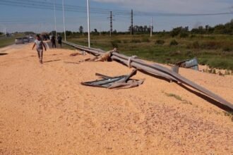 Volcamiento de Camión Cargado con Maíz en Autopista Rosario-Santa Fe