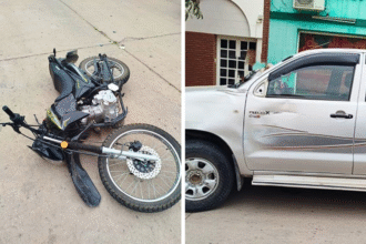 Accidente: colisión entre una moto y una camioneta en San Cristóbal