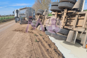 Ataliva: volcó un acoplado de un camión lechero y se derramaron cientos de litros de leche