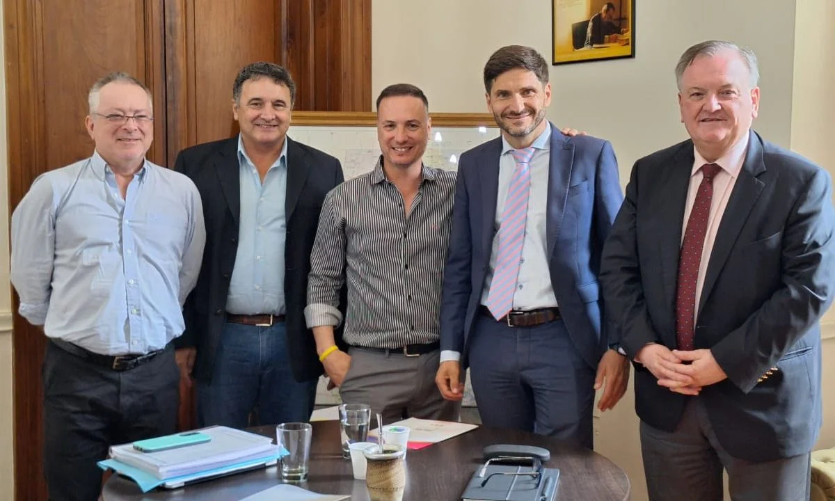 El Casa de Gobierno, el Senador Felipe Michlig y el Diputado Marcelo González mantuvieron una reunión de trabajo con el ministro de Obras Públicas de la Provincia de Santa Fe, Lisandro Enrico, a la cual se sumó -en parte de ella- el Gobernador Maximiliano Pullaro.