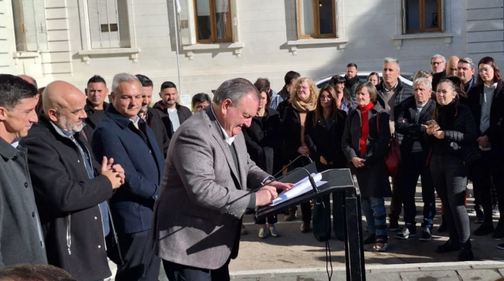 Así lo manifestó el Senador Felipe Michlig durante el acto desarrollado en la explanada de legislatura de firma del convenio para la realización de los estudios de factibilidad del enlace vial que se construiría en paralelo al Carretero.