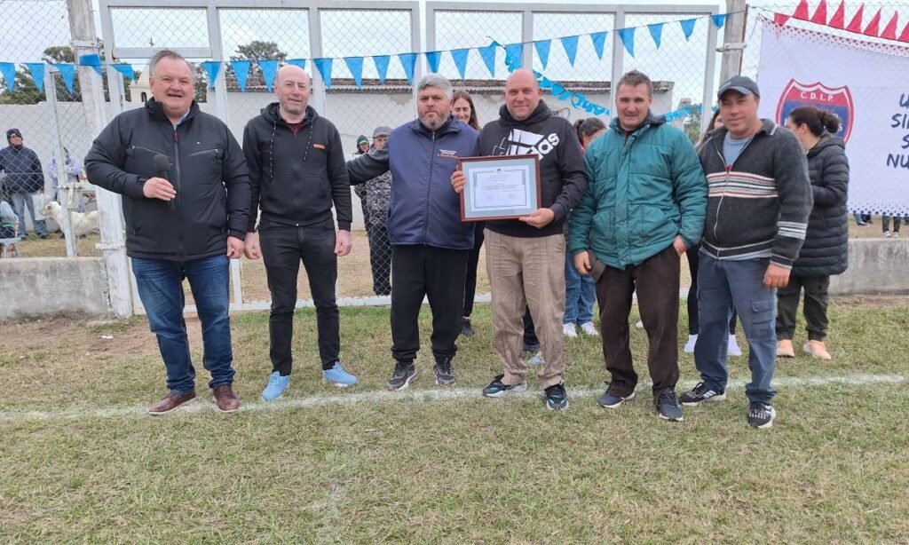 En la oportunidad el Senador Michlig hizo entrega al Presidente del Club Javier Franzotti de la Declaratoria “De Interés” de la Cámara de Senadores, en reconocimiento al Club Deportivo Las Palmeras por haber obtenido recientemente el campeonato de la Liga Morterense de Fútbol, temporada año 2023/ 2024. También se encontraban presentes los Ptes. Comunales de Colonia Dos Rosas y la Legua Carina Frank y de Colonia Ana Marcos Clausen.,