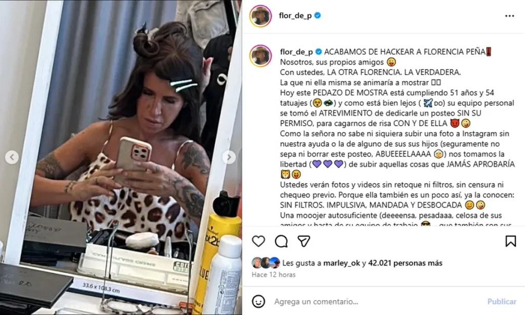 El post inicial de sus amigos se volvió viral, capturando la atención de millones en redes sociales. En él, se anunciaba: “Acabamos de hackear a Florencia Peña. Nosotros, sus propios amigos. Con ustedes, la otra Florencia. La verdadera.” Este tipo de bromas, aunque arriesgadas, suelen ser comunes en el ámbito del entretenimiento, donde el humor juega un papel crucial en la dinámica de grupo.