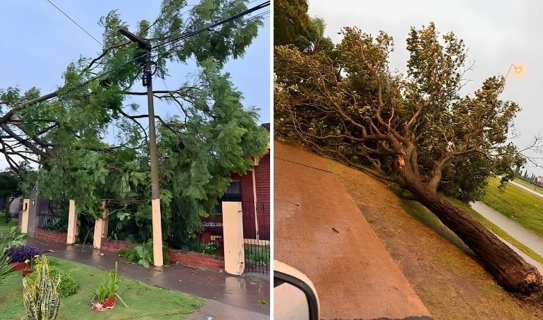 Tras el paso del fenómeno climático, personal municipal y servicios de emergencia trabajaron en la remoción de árboles caídos y en la asistencia a vecinos afectados.