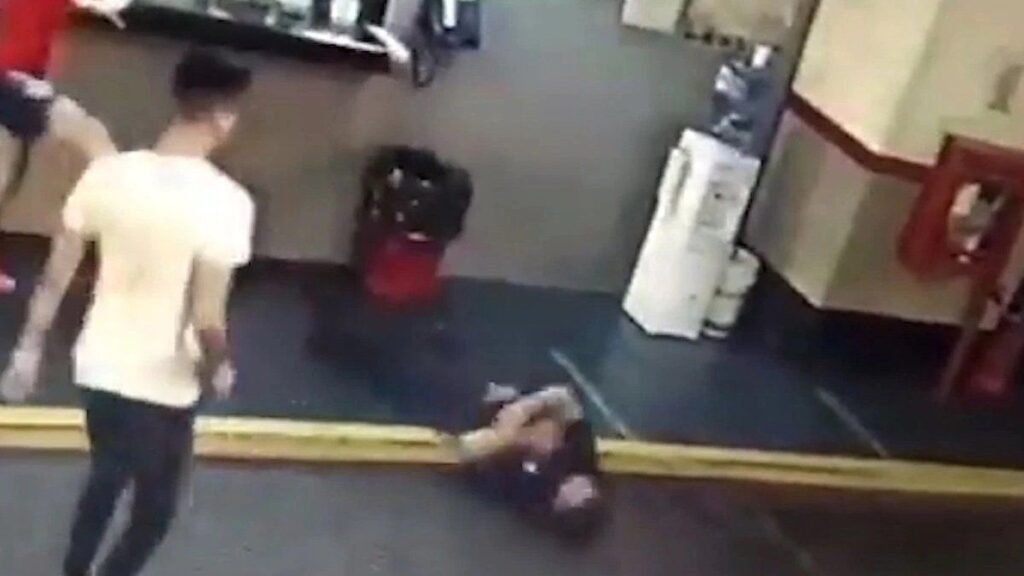 En el inicio del video, se ve a estos tres últimos hablando con el playero, quien se acerca al lugar donde se encontraba la mujer y mientras habla con ella, uno de los jóvenes le dio un fuerte golpe en la cara, tras lo cual el empleado cayó inconsciente al piso. Según puede verse, los otros dos jóvenes se acercaron, trataron de incorporarlo, pero como no pudieron y empezaron a mojarle la cara, pero el hombre, de 60 años, no reaccionó.