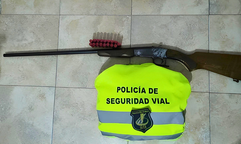 Sin embargo, la situación se complicó cuando los agentes descubrieron una escopeta en la parte trasera de la camioneta. El arma, una escopeta de un caño marca SOLE, calibre 32, estaba acompañada de una caja roja con municiones. El conductor alegó que la escopeta pertenecía a su abuelo, pero no pudo presentar la documentación necesaria para su tenencia legal.
