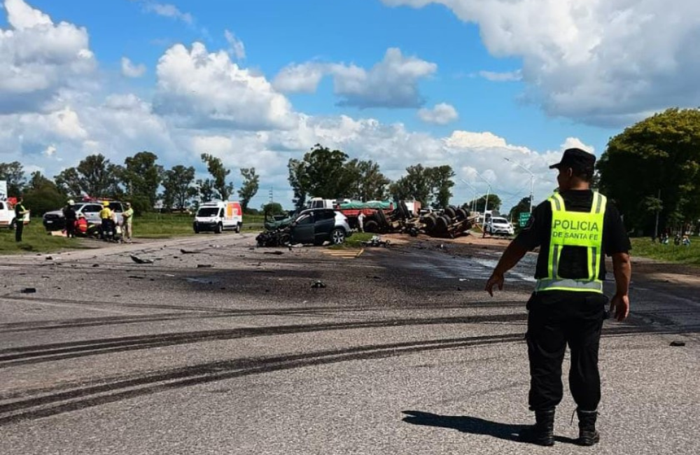 La camioneta impactó entre el enganche del chasis y el acoplado del transporte de gran porte, generando un espectacular siniestro que dejó importantes daños materiales en ambos vehículos.