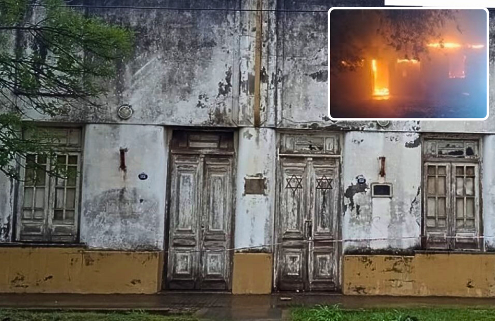 Por ANDRES GIMENEZ – Cerca de las 4 de la madrugada, efectivos policiales que realizaban recorridas preventivas advirtieron que la parte trasera del edificio perteneciente a la comunidad judía se encontraba prendida fuego.