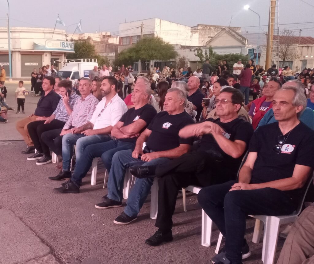 Una importante cantidad de vecinos ocupaban parte de la plaza Almirante Brown y sus inmediaciones para disfrutar al aire libre del espectáculo artístico que tiene como número central Los Palmé. Entrevistamos al Gerente Comercial de la firma, Norberto Merati y el asesor comercial de la empresa Gustavo Boasso.