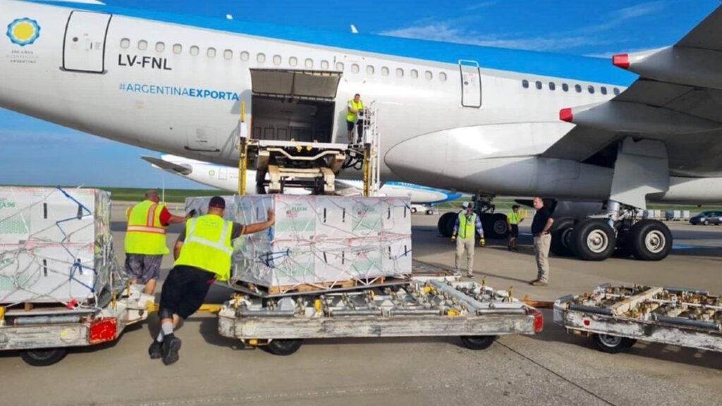 El cargamento con las primeras 100.620 dosis, del total de 20 millones previstas para este año de vacunas de Pfizer, arribó a las 15.11 al Aeropuerto Internacional de Ezeiza, en el vuelvo AA991 de American Airlines.