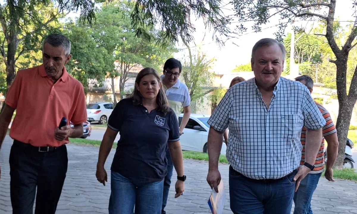 En primera instancia las autoridades visitaron la Escuela Normal Superior N° 40 «Mariano Moreno» donde fueron recibidos por la rectora Milena González, a quien formalmente hizo entrega de un aporte de $26.050.500, otorgado por el Ministerio de Educación de la provincia de Santa Fe.