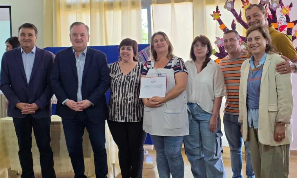 Allí, en nombre del gobernador Maximiliano Pullaro y del ministro de Educación José Goity se entregó un aporte del FANI, por un monto de $14.993.531,00 a la institución para ser destinados a la reparación de cielorrasos de yeso en aulas, comedor, sala de nivel inicial y demás dependencias de la institución”.