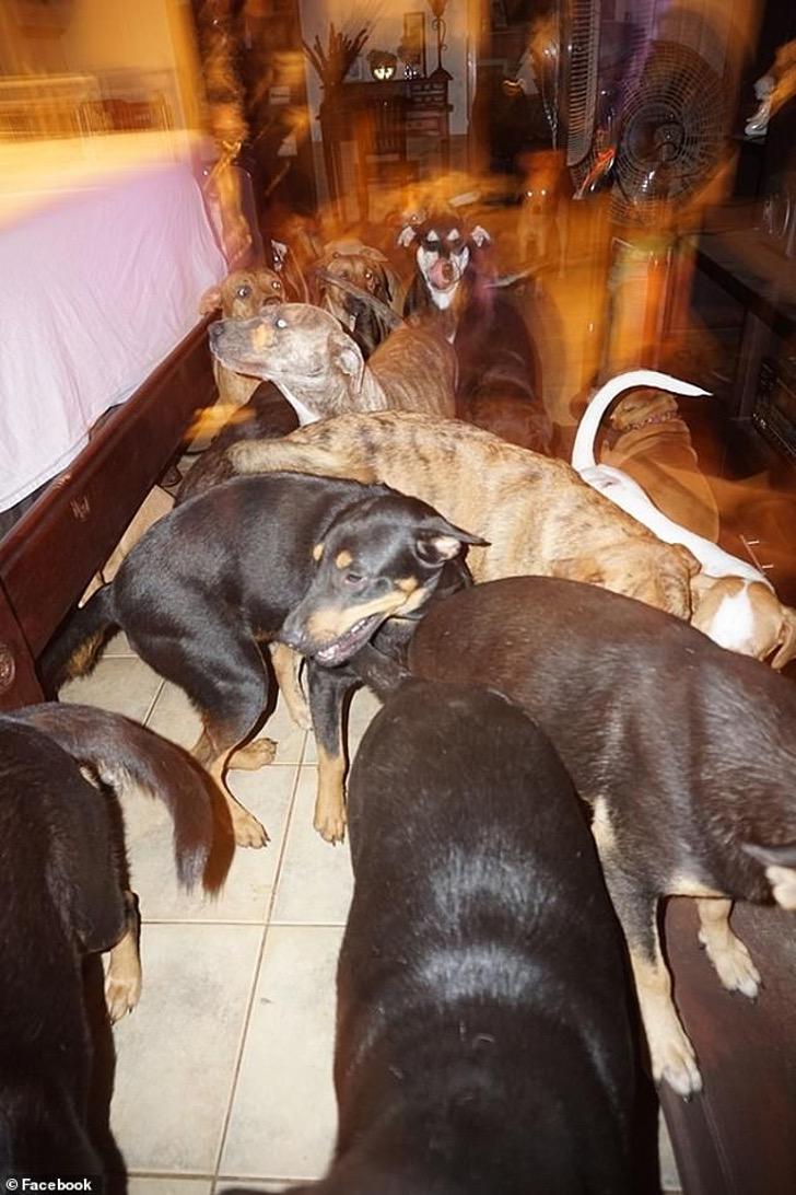 «97 perros están dentro de mi casa y 79 de ellos están dentro de mi dormitorio principal. Ha sido una locura desde la noche anterior, pero al menos están salvo y seguros conmigo», comentó Chella Phillips, la mujer que les dio una nueva oportunidad de vivir.