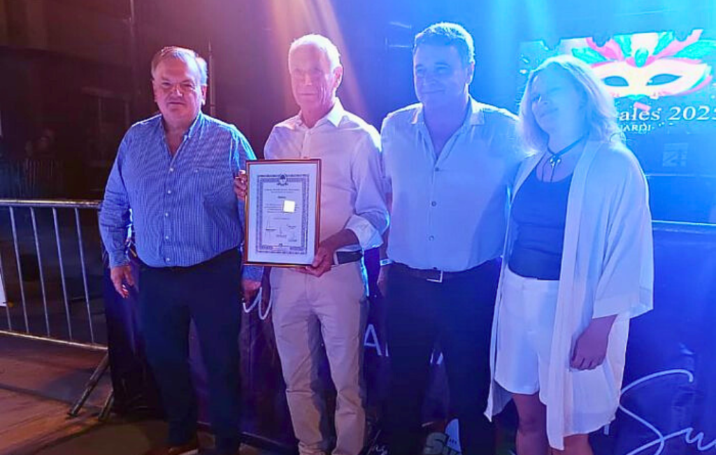 Durante la noche, el senador Felipe Michlig junto con los diputados Marcelo González y Sofía Masutti, hicieron entrega de una declaración de interés de la Legislatura santafesina, en reconocimiento al impacto cultural y turístico del carnaval, que año tras año reúne a miles de personas en el departamento San Cristóbal.
