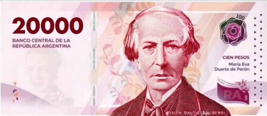 Por su parte, el billete de 20.000 pesos contará con la imagen de Juan Bautista Alberdi, padre de la Constitución Nacional de 1853. El reverso mostrará una recreación de su casa natal, resaltando sus múltiples roles en la sociedad. Ambas denominaciones utilizarán diseños preexistentes de la familia «Heroínas y Héroes de la Patria» para ahorrar costos y acelerar la producción.