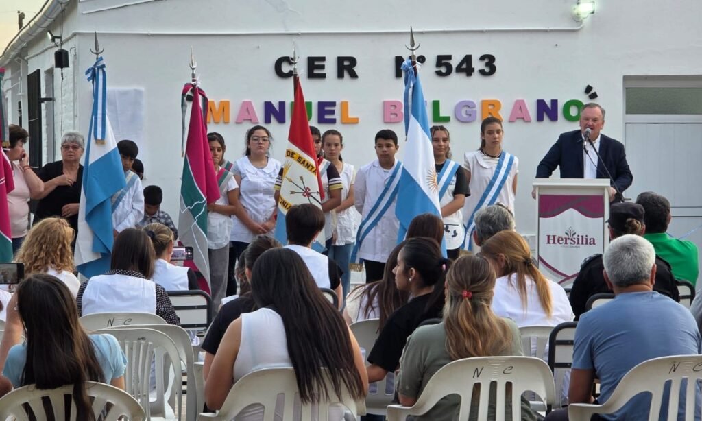 El senador provincial Felipe Michlig, acompañado por el diputado Marcelo González y la presidente comunal de Hersilia Silvana Romero, encabezó el acto de puesta en valor del Centro Educativo Rural N° 543 “Manuel Belgrano”, a la vez que anunció nuevas gestiones para fortalecer la educación rural.