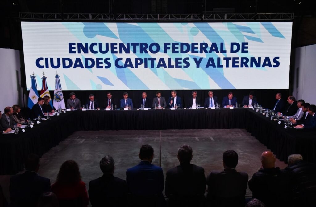 El gobernador Maximiliano Pullaro participó este lunes, en Rosario, junto a 20 intendentes de las ciudades más importantes del país, del Encuentro Federal de Ciudades Capitales y Alternas, para definir lineamientos comunes en sus reclamos al Gobierno nacional en materia de recursos, obras e infraestructura, educación, impuestos, retenciones y transporte público, entre otros. La reunión tuvo lugar en el Centro de Expresiones Contemporáneas y estuvo presente el ministro del Interior de la Nación, Guillermo Francos.
