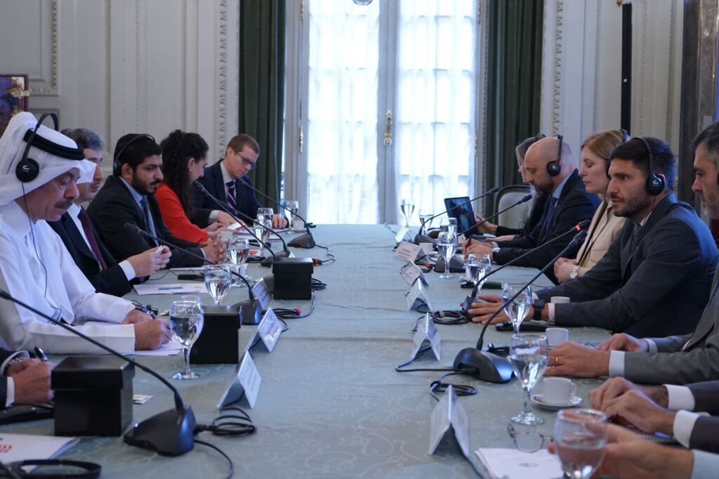 El gobernador de Santa Fe, Maximiliano Pullaro, la vicegobernadora Gisela Scaglia, el ministro de Desarrollo Productivo, Gustavo Puccini, y la secretaria de Comercio Exterior, Georgina Losada, junto a funcionarios de Cancillería Argentina, mantuvieron un encuentro en la ciudad de Buenos Aires con los embajadores de Arabia Saudita, Kuwait y Qatar, y el encargado de negocios de Emiratos Árabes Unidos. La mesa de trabajo se realizó en el Palacio San Martín, y tuvo como objetivo, además de fortalecer las relaciones, aumentar las inversiones de esas naciones en la provincia e incrementar las exportaciones de la producción santafesina.