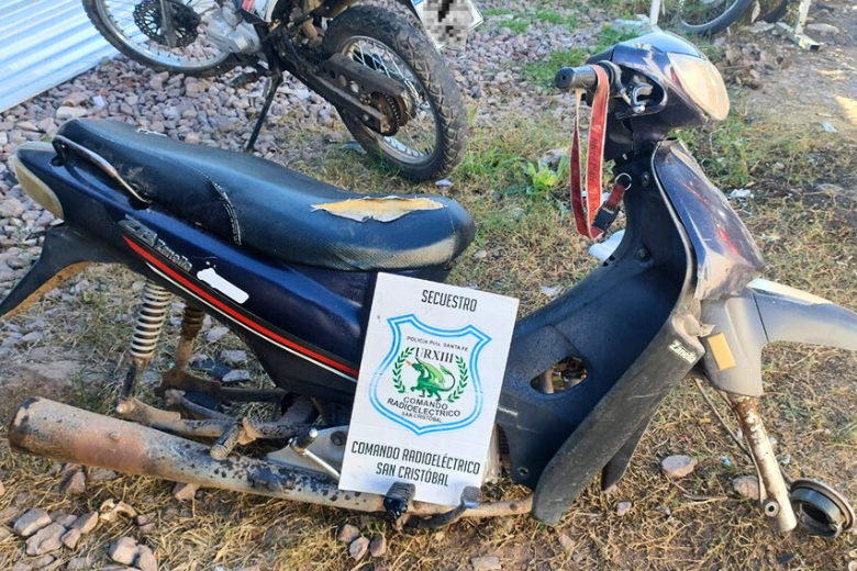 La investigación llevó a los agentes a encontrar la moto en un descampado de Calle Urquiza sin número, en una zona suburbana de San Cristóbal. Lamentablemente, el vehículo ya había sido despojado de sus ruedas.