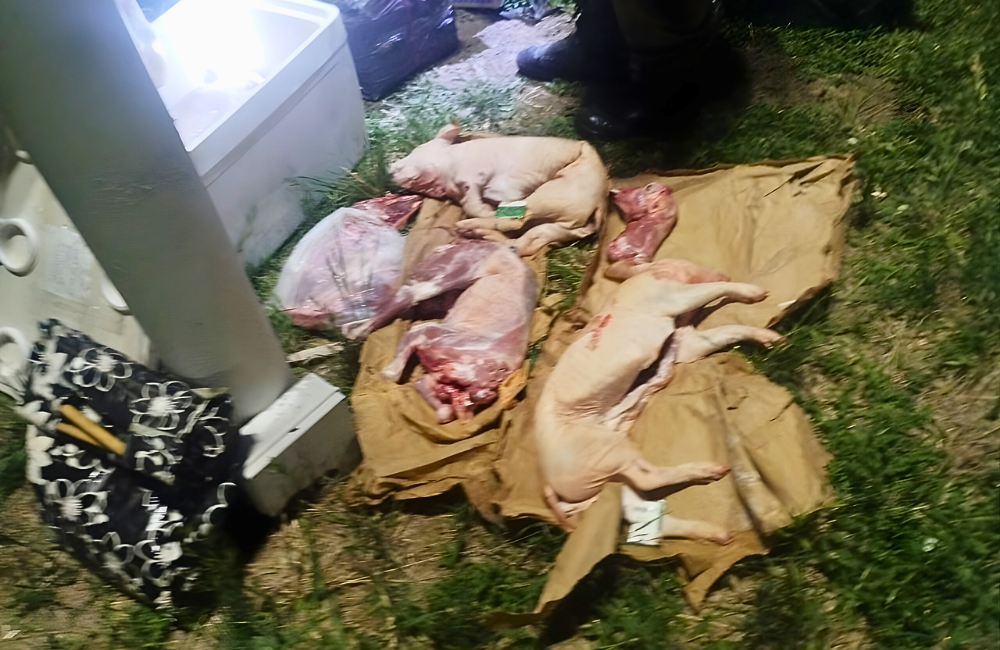 Dentro de los paquetes, se encontraron 13 animales porcinos, 10 caprinos faenados y aproximadamente 40 kilos de embutidos, todos sin documentación sanitaria ni condiciones adecuadas de transporte.