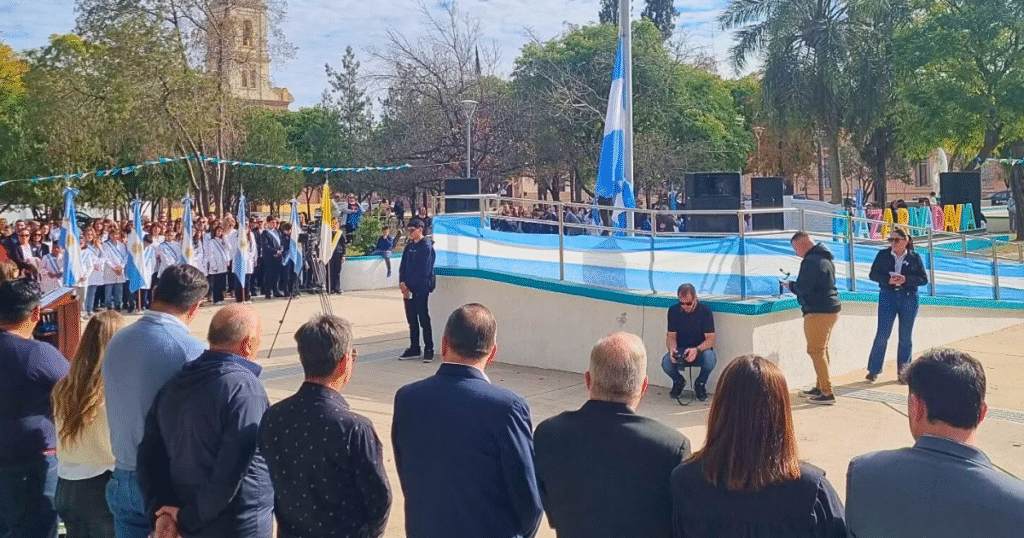 El tradicional acto del 9 de Julio en San Cristóbal tuvo lugar en plaza Rivadavia, pero la convocatoria fue notoriamente baja. Más allá de la presencia de escuelas, instituciones públicas y autoridades locales, el público en general fue escaso, dejando amplios sectores de la plaza vacíos.
