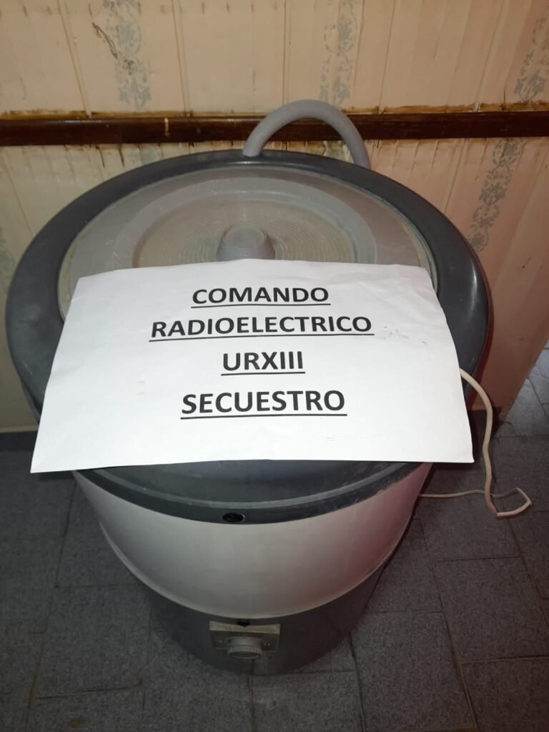 Personal del Comando tomó conocimiento de que un empleado municipal que se encontraba realizando sus tareas laborales, encontró entre unas malezas un lavarropas común con paletas de color negro, gris y blanco.