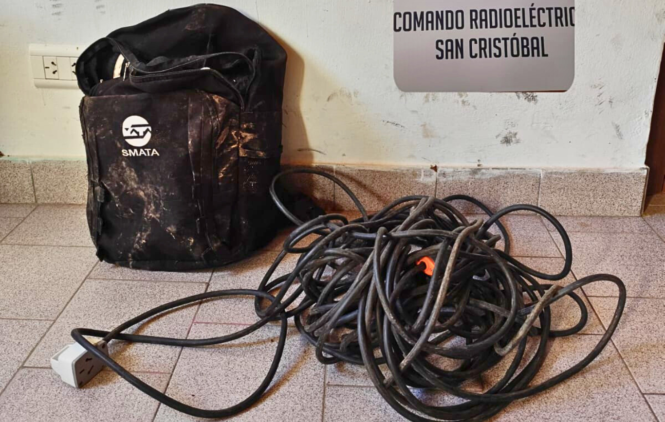Personal del Comando Radioeléctrico interceptó a dos individuos en calles Laprida y General Paz, quienes llevaban una mochila con una prolongación de 30 metros. Al no poder justificar su procedencia, la policía procedió al secuestro preventivo de los elementos, ante la sospecha de que fueran robados.
