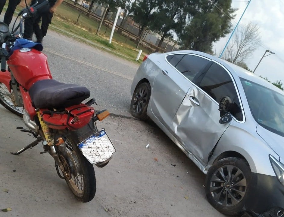 Las partes involucradas son, un automóvil marca Chevrolet Cruze guiado por un hombre de 57 años y una motocicleta marca Motomel modelo S2, 150cc, guiada por un ciudadano mayor de edad.