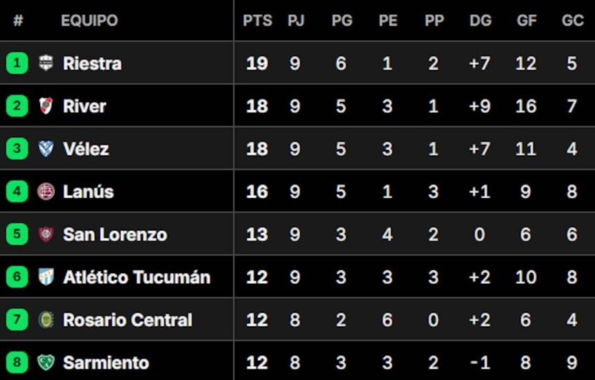 Tablas de posiciones del Torneo Clausura 2025 después de la fecha 9