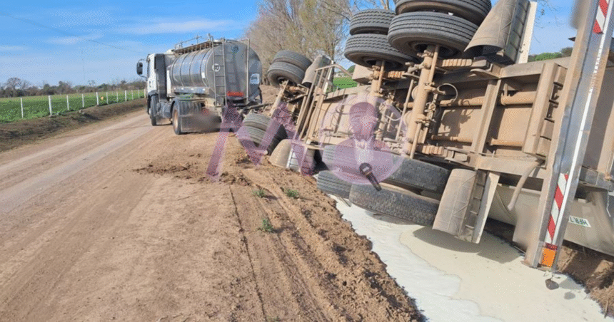 Ataliva: volcó un acoplado de un camión lechero y se derramaron cientos de litros de leche