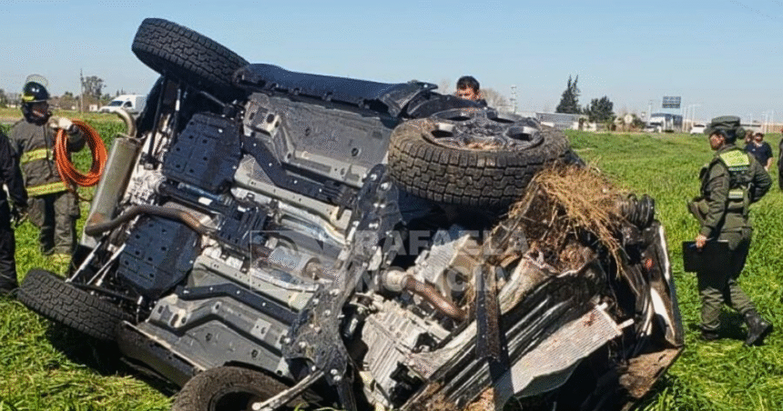 El vehículo en el que viajaban dos personas desde Villaguay despistó, chocó contra el guardarrail y volcó.