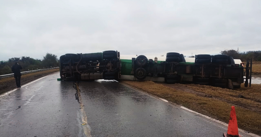 Volcó un camión cisterna en la Ruta 34 cerca de Arrufó