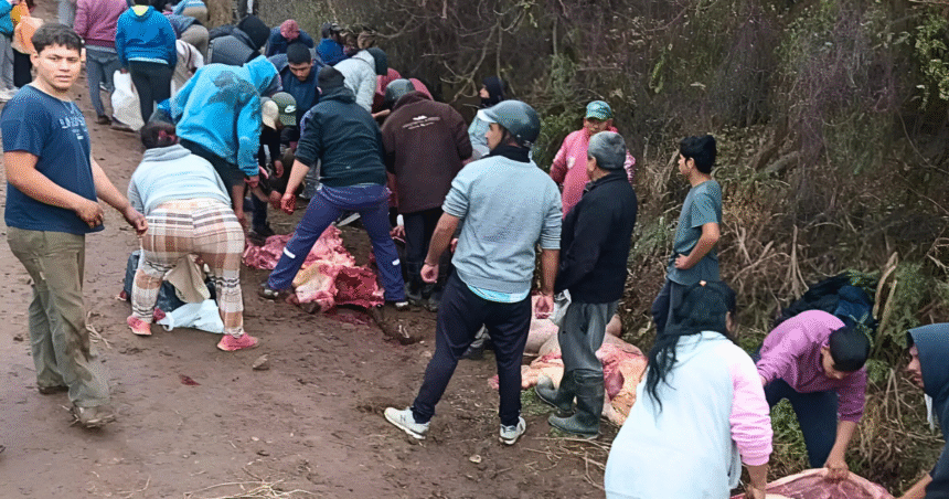 Desesperación por un pedazo de carne en Morteros: vecinos faenaron vacunos muertos tras un vuelco