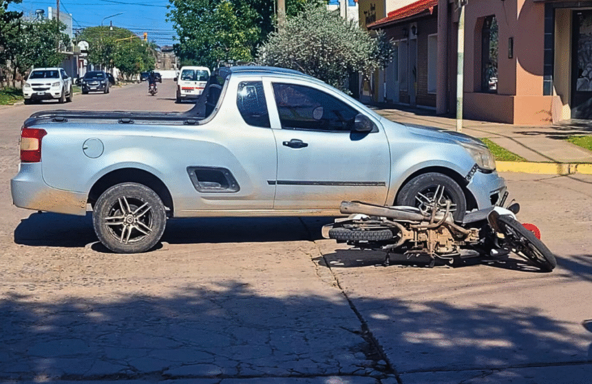 Una motociclista fue trasladada al hospital tras colisionar con una pick up en una transitada esquina de la ciudad.