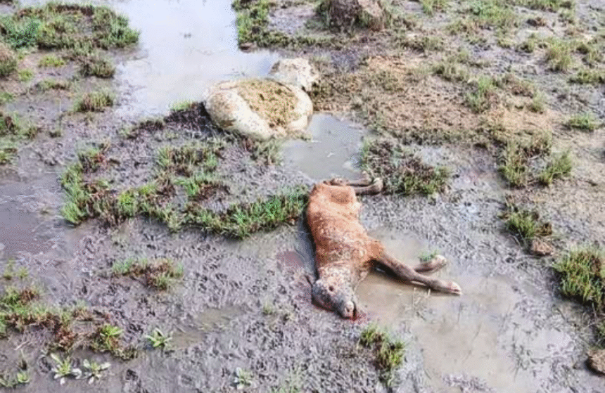 Crueldad y abandono: faenaron una vaca preñada en un campo de San Cristóbal