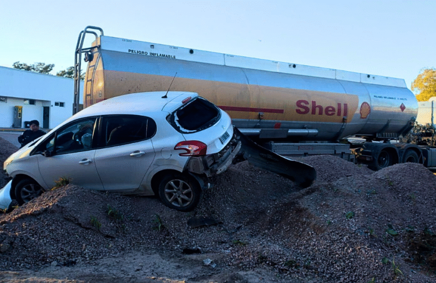 Un hombre de 38 años perdió el control del auto y terminó impactando contra un camión de combustible vacío. Solo sufrió lesiones leves.