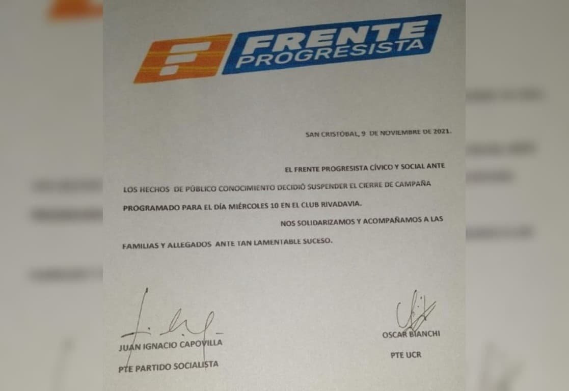 San Cristóbal: El Frente Progresista suspende el acto de cierre de campaña