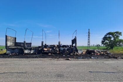 Un camión cargado de trigo se incendió por completo en Colonia Rosa