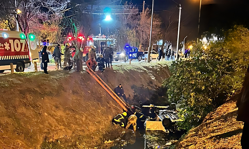 En Sunchales, se produjo un grave accidente vial en el que un automóvil cayó en el interior del canal norte en la intersección de las calles Leguizamón y Alvear.