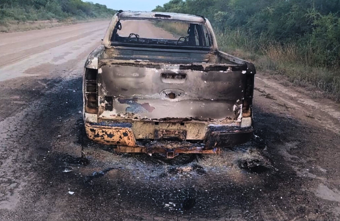 La camioneta, perteneciente a la empresa HERGOR S.A., fue alcanzada por las llamas y sufrió pérdidas materiales totales.
