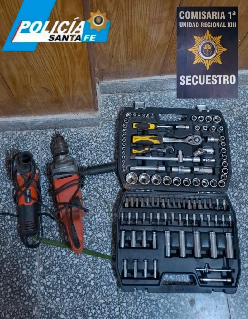 Tras tareas investigativas, la policía logró identificar a un sospechoso y, si bien el allanamiento en su domicilio dio negativo, durante rastrillajes se logró recuperar parte de los elementos sustraídos, como una amoladora, un taladro y herramientas.