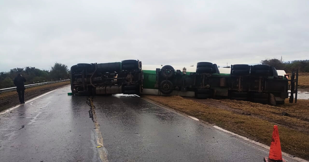 Un camión cisterna marca Volvo que circulaba por la Ruta 34, a 2 kilómetros al norte de la localidad de Arrufó, protagonizó un vuelco por razones que aún se intentan establecer. El conductor, un hombre de 34 años de nacionalidad boliviana, viajaba desde Buenos Aires hacia Bolivia.