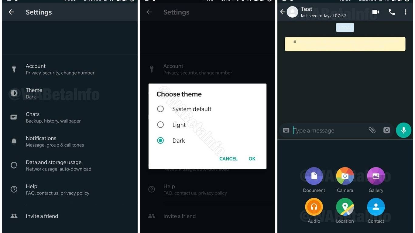 Tal como informa el medio especializado WaBetaInfo, la implementación del modo oscuro sería cuestión de semanas. Lo primero que empezó a oscurecerse fue parte de la interfaz y luego los desarrolladores han cambiado el menú de activación para que este se ajuste al ahorro de batería.